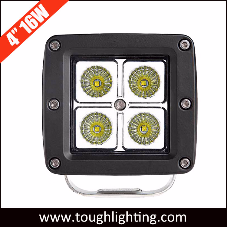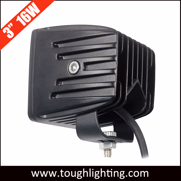 3" 16W luz LED de trabajo. 4 x 4 vatios de potencia alta CREE LED blanco frío. 9~32VCC intervalo de voltaje, IP67 Resistente al agua la luz. Carcasa de aluminio pintado de negro con disipador térmico integral y la lente de acrílico. Disponible en los estrechos del 30 de grado medio o inundar el patrón del haz de 60 grados. Espárrago ajustable de acero inoxidable y soporte de montaje de las fichas de montaje opcional incluido.